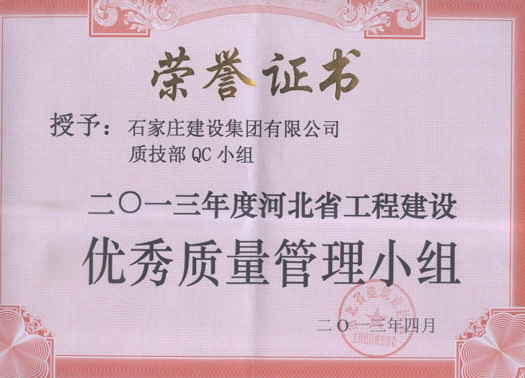 2013年度河北省工程建設優(yōu)秀質量管理小組